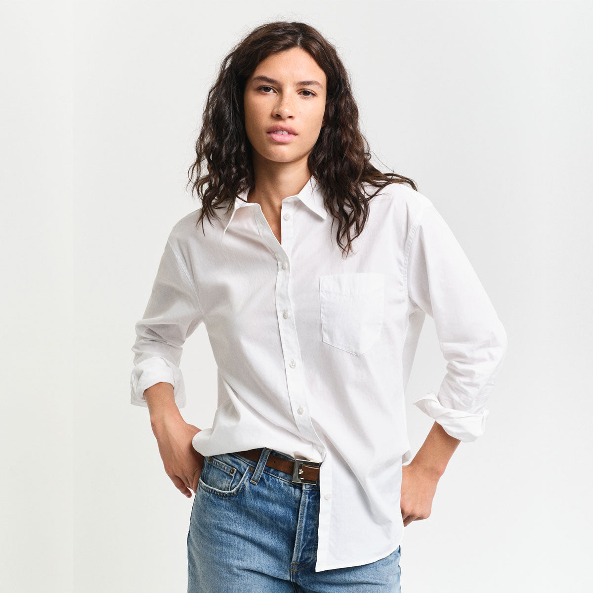 Der Stoff wurde exklusiv aus hochwertiger Baumwolle mit Stretch Anteil produziert. Sie hat eine legere Passform und verfügt über einen spitzen Kragen, verstellbare Manschetten, eine dezente Stickerei auf der Brust und die charakteristische GANT-Schließfachschlaufe auf der Rückseite.