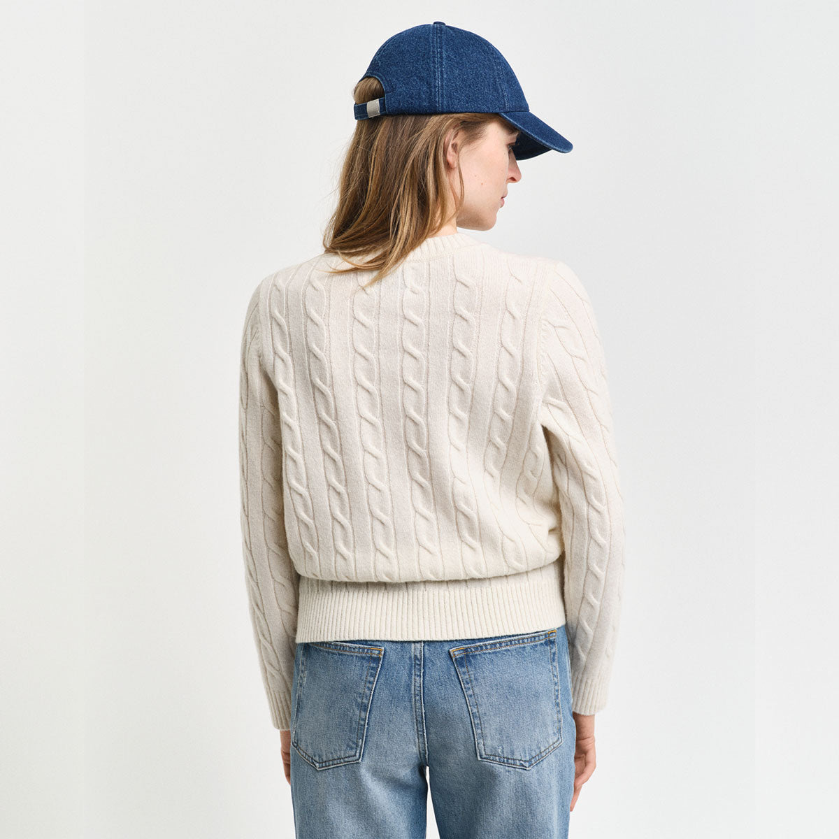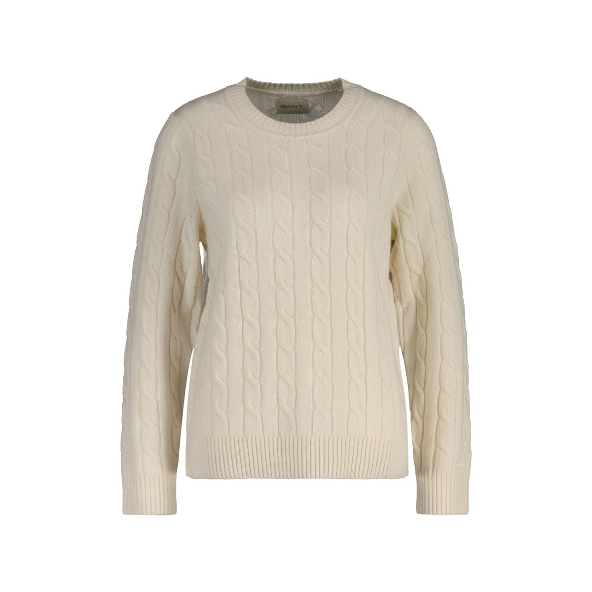 Gant Damen Pullover Lambswool Zopfstrick Rundhalspullover