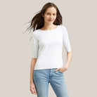 Weil unser Ringelshirt so viele Liebhaberinnen erfreut, bieten wir die sagenhafte Qualität und die hervorragenden Trageeigenschaften auch in einem unifarbenem Shirt an. Der 3/4 Arm sorgt für Luftigkeit und eignet sich besonders für Damen, die Ihre Arme ein bißchen mehr bedecken wollen. Ein runder Halsausschnitt passt zu allen Modestils und sieht solo oder mit Tuch verführerisch aus. Und damit Ihre Figur auch entsprechend zur Geltung kommt, ist das Huitriere leicht tailliert geschnitten.