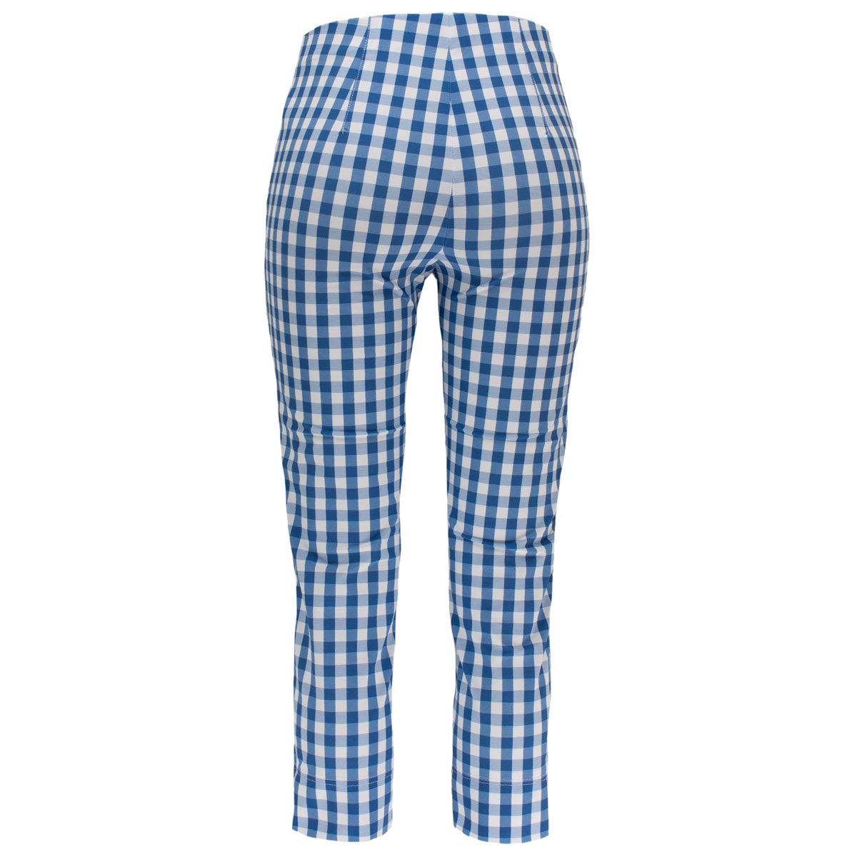 Die Hose hat einen elastischen Bund, ist schmal geschnitten und hat eine normale Leibhöhe. Das Modell Capri ist eine 7/8 Hose, die durch einen Schlitz am Saum aufgepeppt wird. Die Hose ist sehr pflegeleicht und knitterarm. Weitere Angaben zum Artikel: Bistretch, Vichykaro, Fußweite: 32 cm Schrittlänge: 63 cm