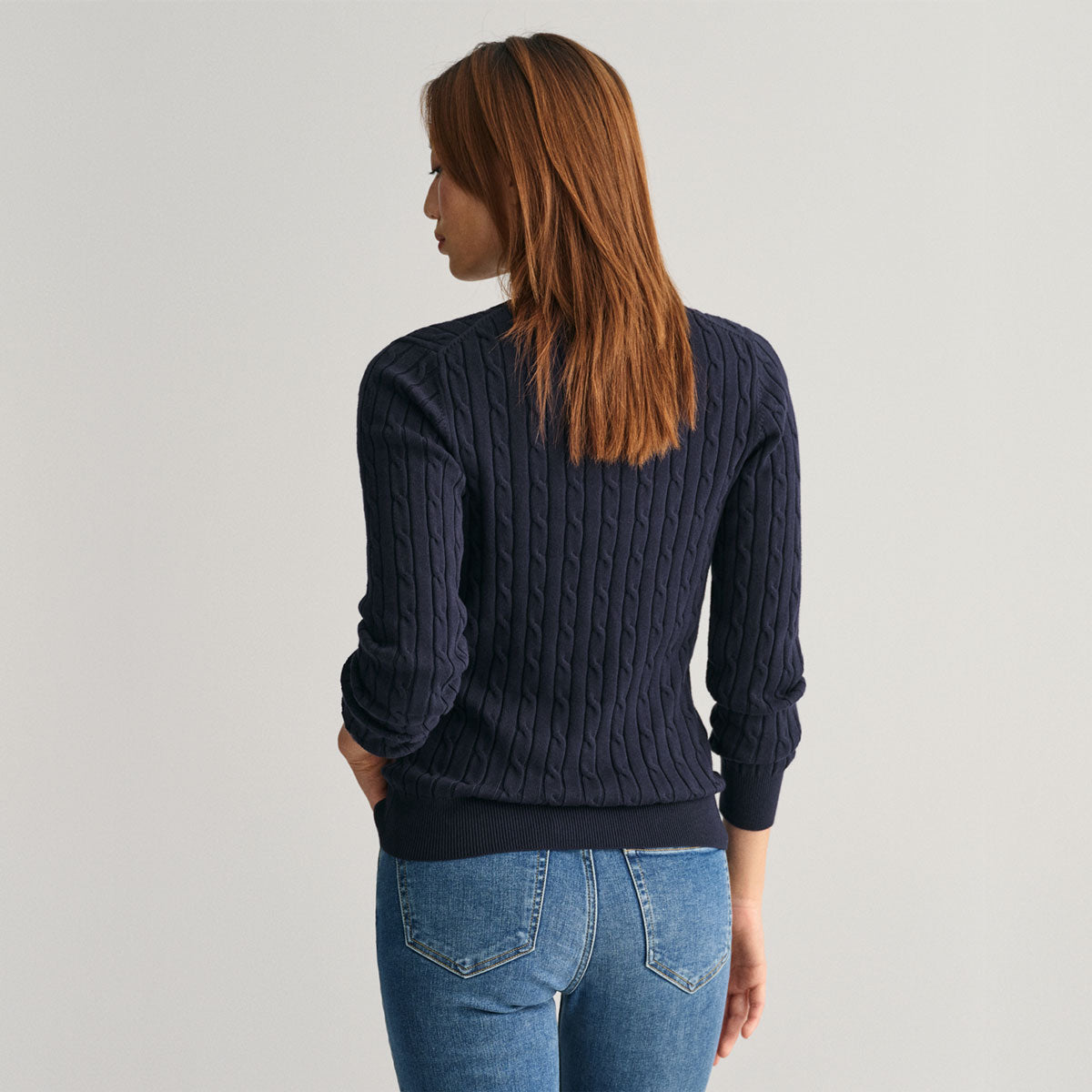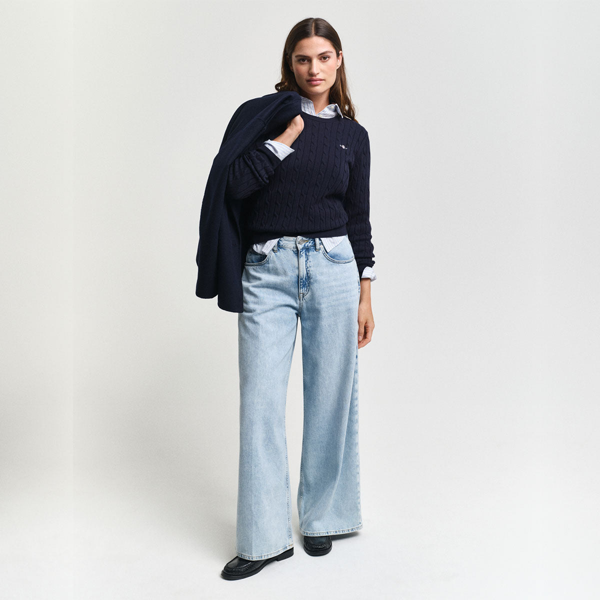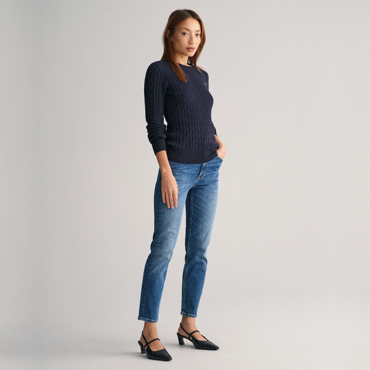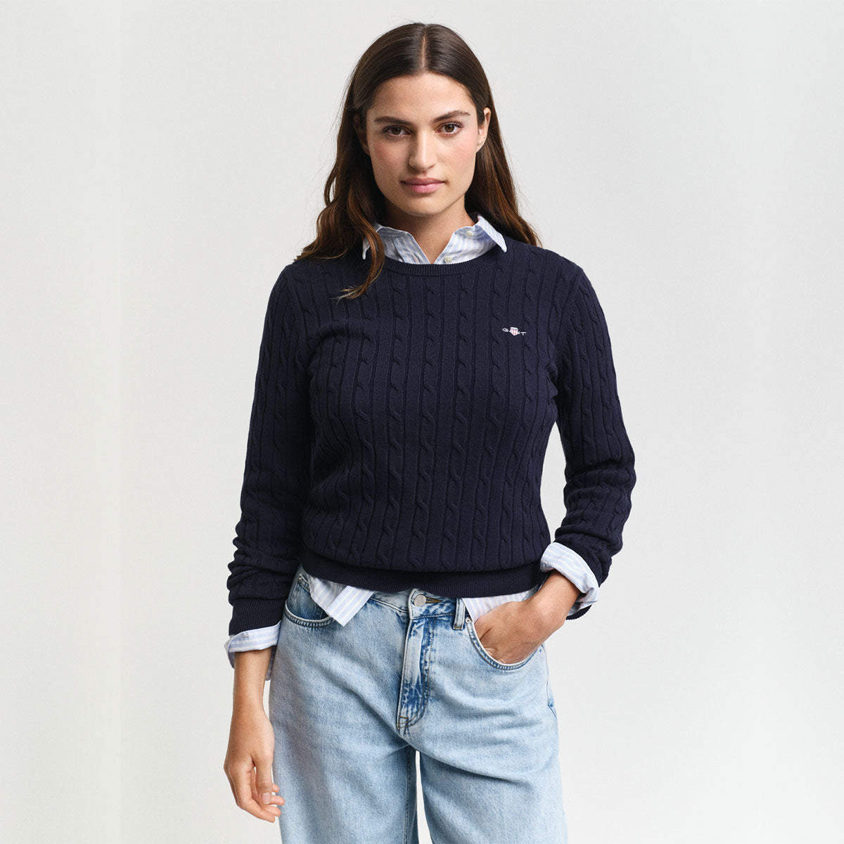 Dieser Rundhalspullover für Damen ist ein echter GANT Klassiker im Zopfstrickmuster. Es ist aus einer weichen Baumwoll-Elasthan-Mischung gefertigt und hat eine schmale, aber dehnbare Passform.