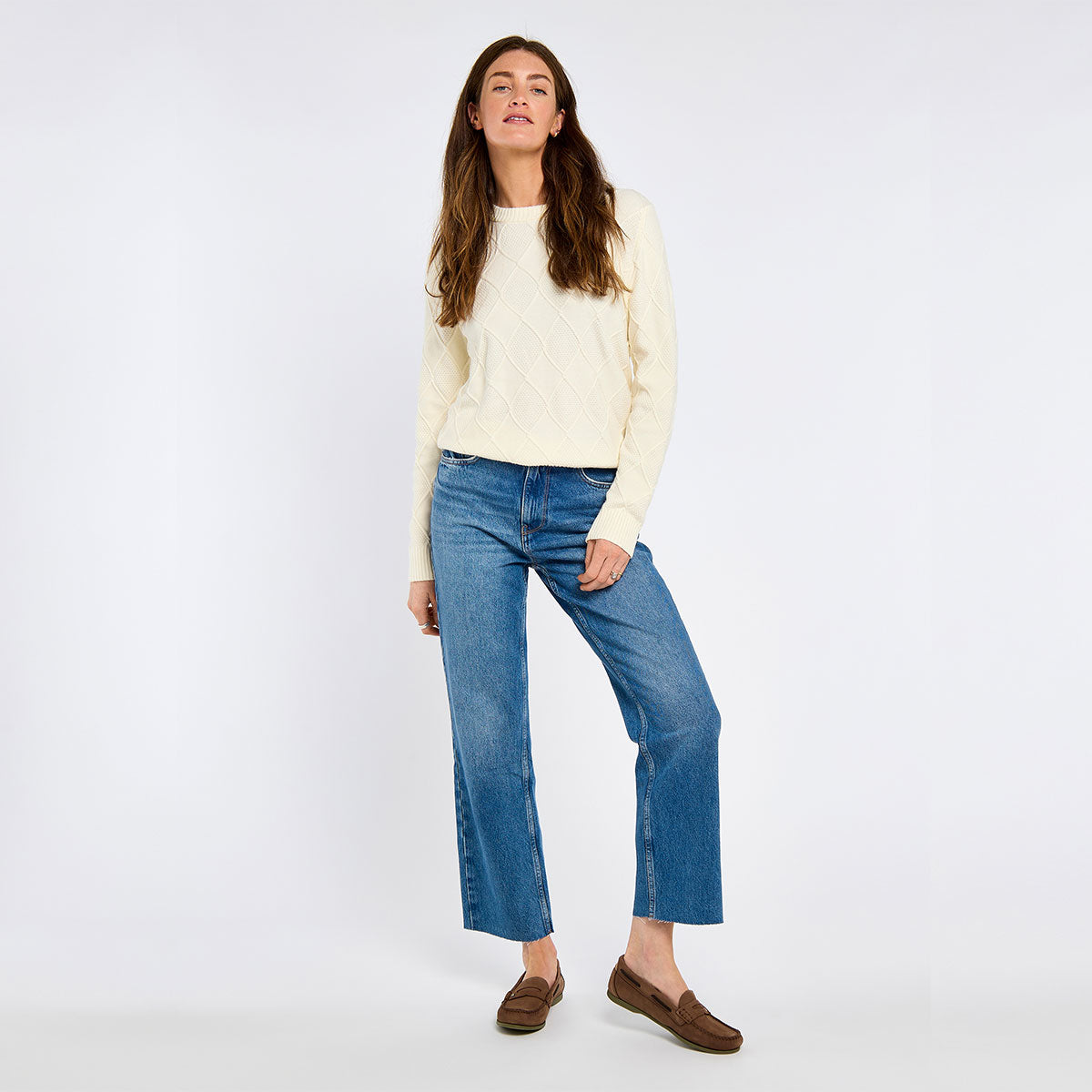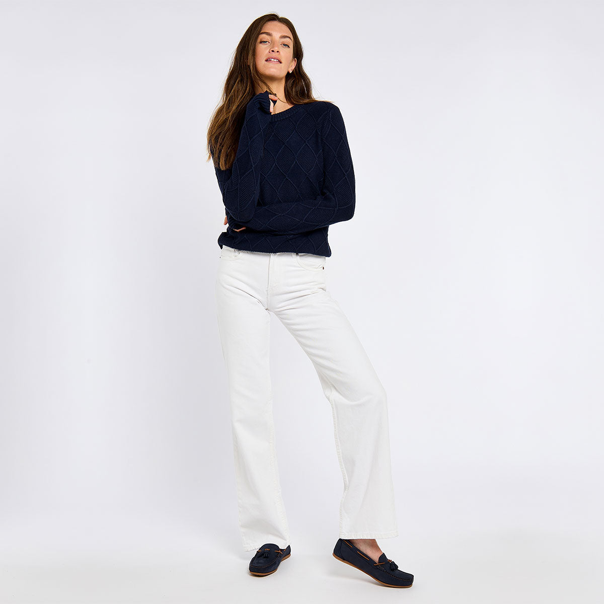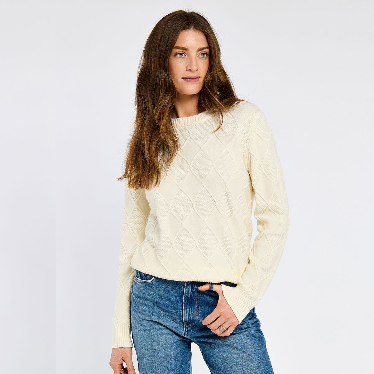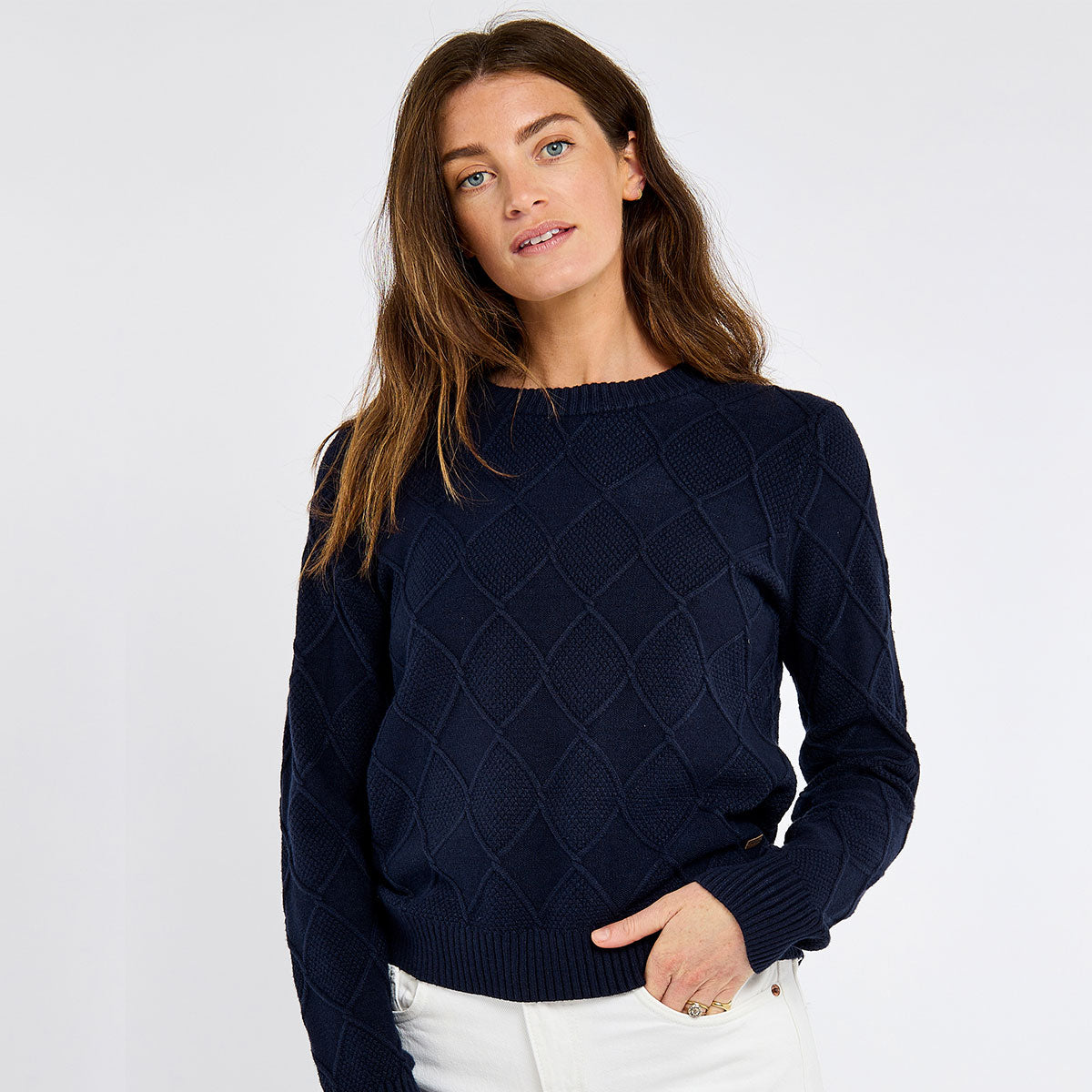 Dank des hohen Stretch-Polyester-Anteils verfügt dieses Modell über eine hervorragende Formbeständigkeit und Elastizität, während Nylon die Langlebigkeit und Widerstandsfähigkeit optimiert. Das klassische Zopfmuster verleiht dem Pullover eine elegante Struktur, während der Rundhalsausschnitt vielseitige Styling-Möglichkeiten bietet. Die gerade Passform sorgt für eine schmeichelhafte Silhouette, ergänzt durch edle, von der Tradition inspirierte Lederimitat-Details.