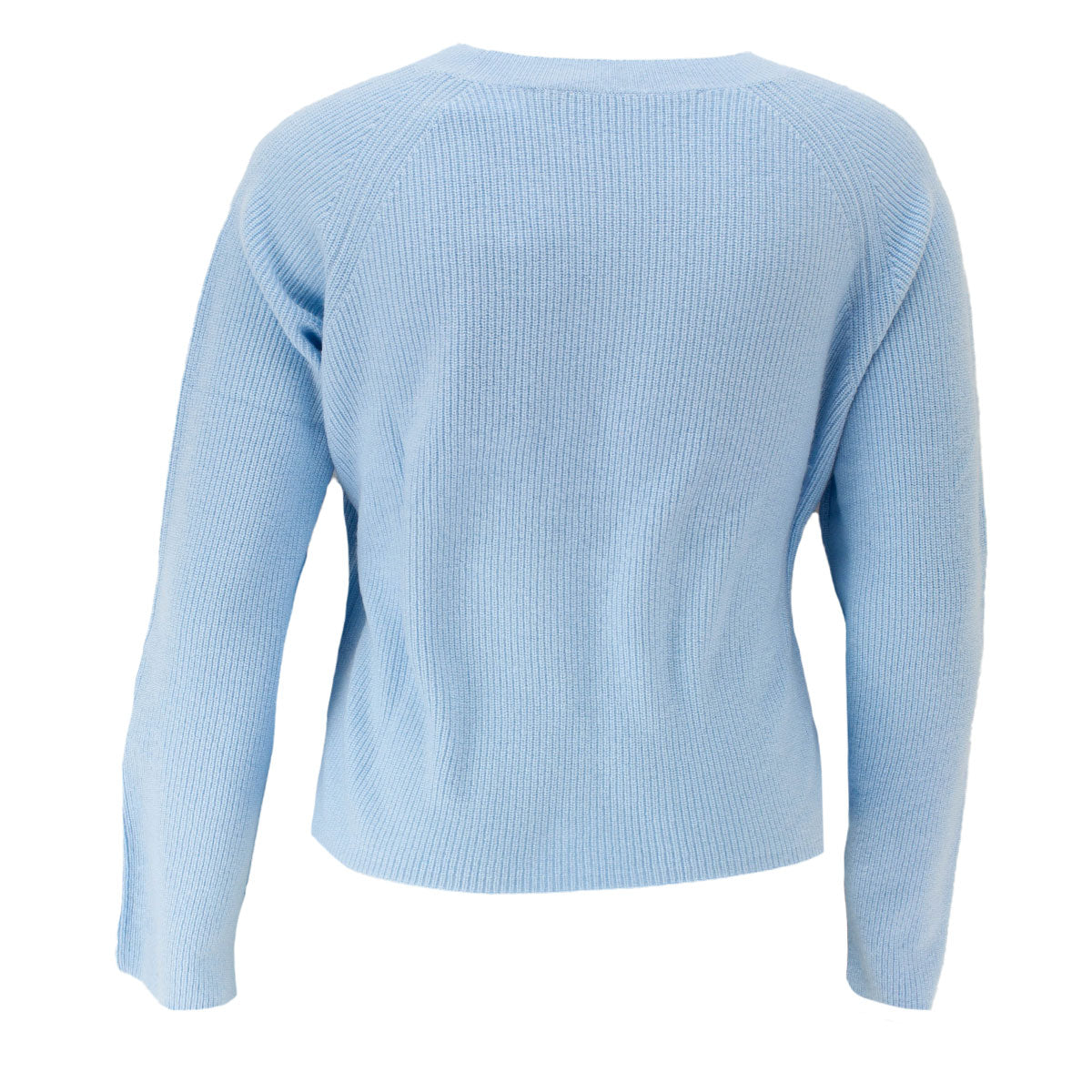 Der Schnitt des Pullovers ist leicht oversized, was ihm eine lässige und dennoch stilvolle Note verleiht. Der V-Ausschnitt setzt einen subtilen Akzent und bietet die Möglichkeit, den Pullover sowohl solo als auch in Kombination mit Hemden oder T-Shirts zu tragen. Die langen Ärmel enden in schmalen Bündchen, die für eine dezente Struktur sorgen, während der Saum hinten etwas länger geschnitten ist als vorne. Dieses Detail verleiht dem Pullover eine moderne Silhouette und sorgt für eine schmeichelhafte Passform.